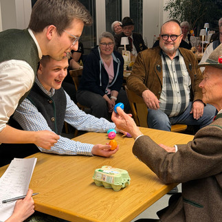 Die Preisverteilung des Osterschießens von der SSV FFB zusammen mit der Fsg FFB war wieder Highlight des Schießjahres. Die Teilnehmer erhielten Schinken von der Hofmetzgerei Braumiller und Ostereier vom Aicher Muichhäusl als Preise. Beim Eierbecksen hatten Jung und Alt viel Spaß